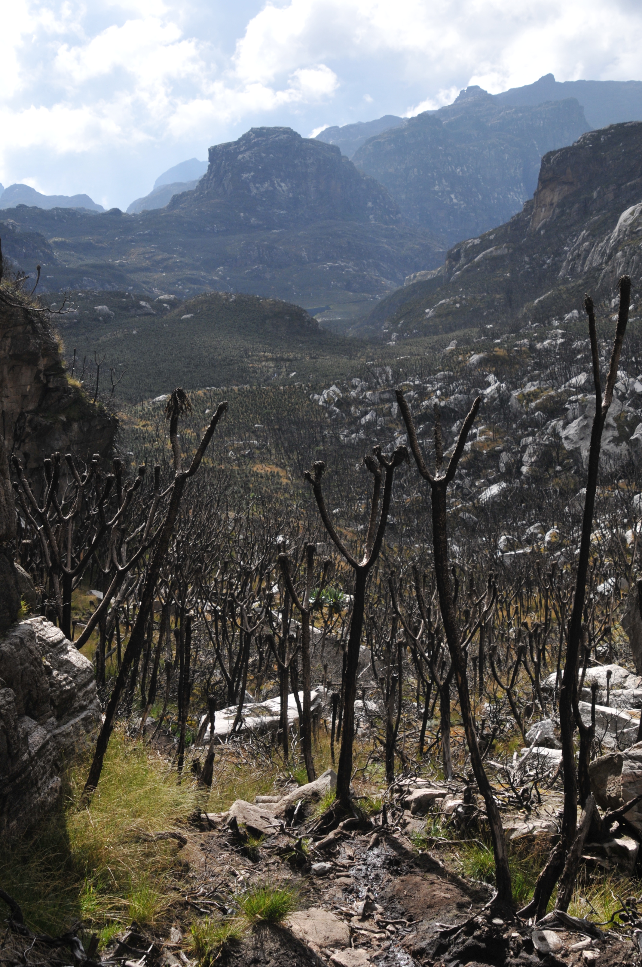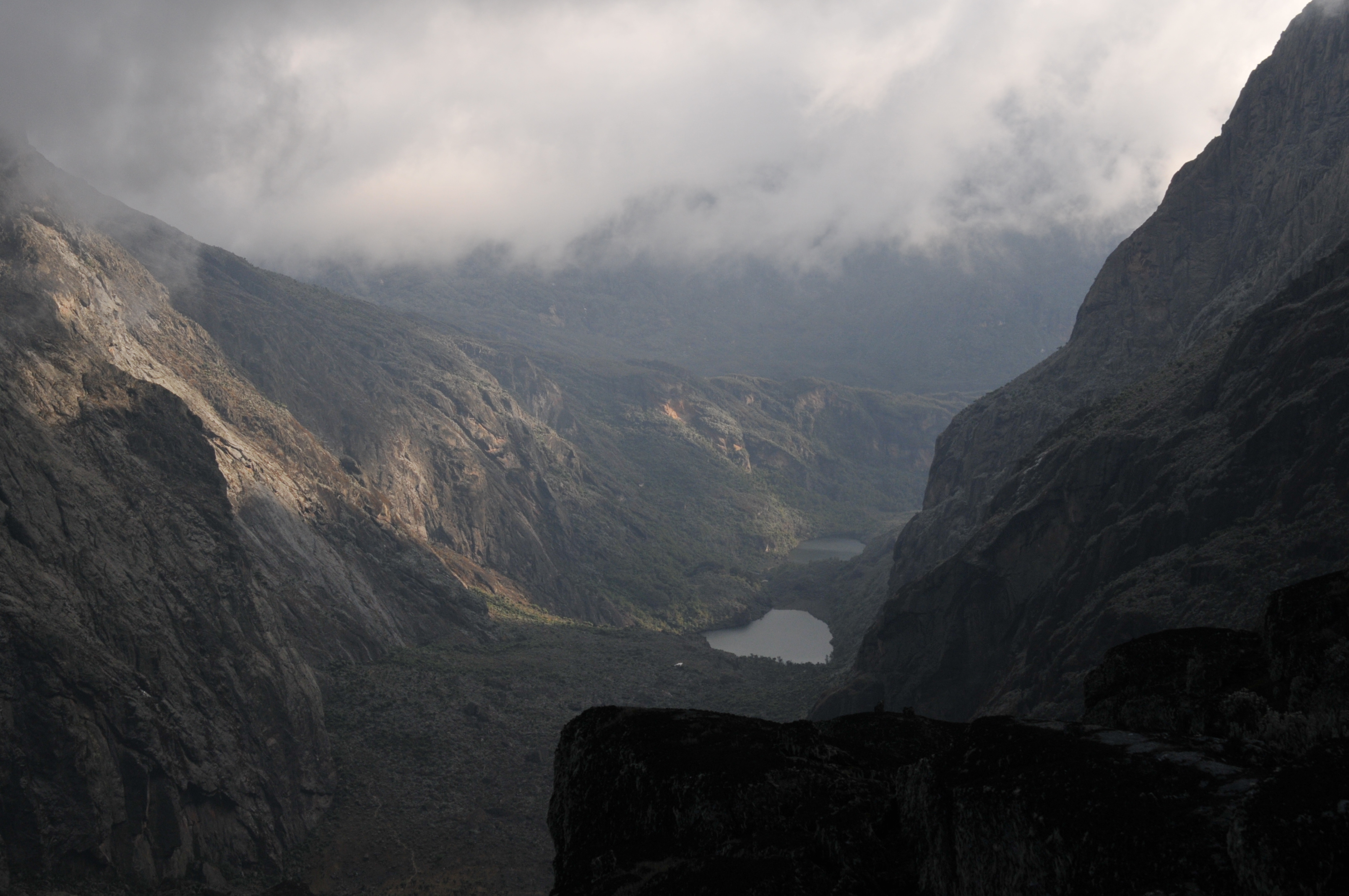 January 2014: Mountains of the Moon(walking): The Rwenzori Mountains of western Uganda are a sight to behold – if the cloud breaks long enough to see beyond the end of one’s arm. Our expedition to the fabled (and sort of actual) source of the Nile took 10 days in Wellies and crampons, a lot of hard trekking, and a litre of decent scotch. It brought us up through terraced farmland, bamboo forest, primeval groves of giant moss, giant heather, giant lobelia (giant everything), afro-alpine moorland, equatorial glaciers, snowy peaks, and enough bog to drown a giraffe. The clouds broke frequently, the view emerged, and rock prongs (most notably McConnell’s) were resplendent on the horizon…